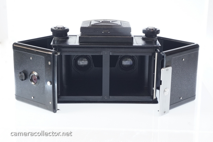 For the collector, it is a plain stereo camera, one of the few made with #120 format film. The stereo format was short-lived, so not many cameras were made to suit. It is an unimportant model, but I like it. I would recommend having one. It has an imposing look, prominent, and little can go wrong with it.