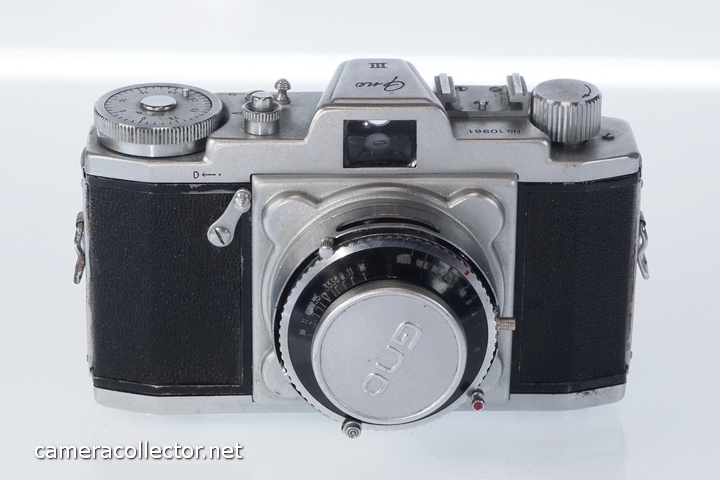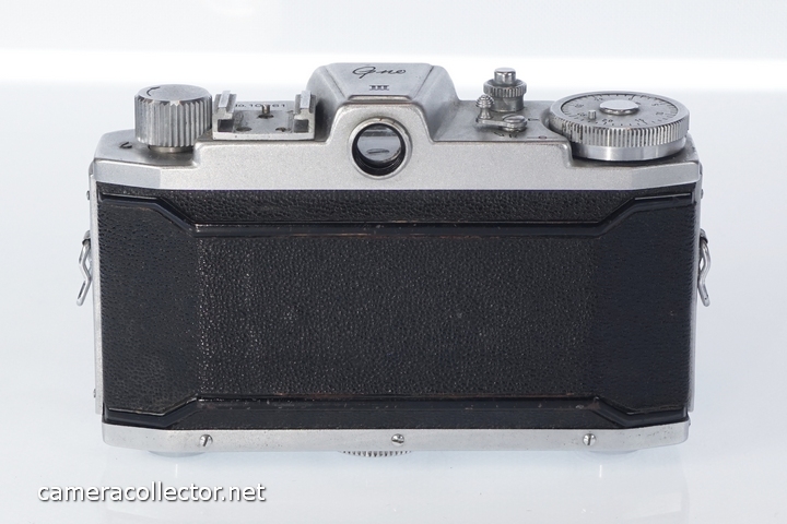 The camera is named Gno III, with no trace of any earlier version or make, so I have catalogued it under the ‘lone rider’ family. When I compiled my database on camdex.ca, I looked for a group name for manufacturers whose names were unknown. ‘Orphan cameras’ was already taken by Butkus, and ‘bastard cameras’ is undignified. So ‘Lone Riders’ category came to be. I assume the camera was made in Post-War Japan, though there is no supporting evidence.