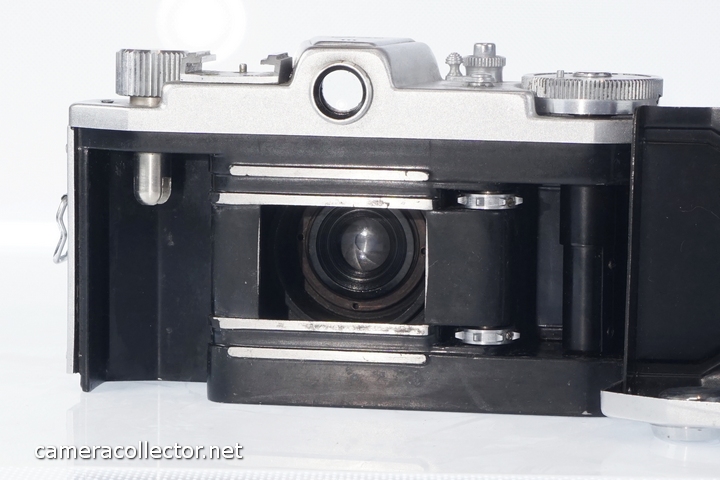 The above brings an ever-recurring question. Without clear information, I assume this camera was made in Japan in the post-war years. If so, the target market was the GI contingent stationed there. It would make more sense to mark the distance in feet, as both then and now, the Americans have no clue about the metric system. Further, if it was meant for the local market, why are all markings in Latin letters, rather than Kanji? And last, the mounting bush in all cameras is 1/4“ BSW, which was long abandoned by the Brits. No camera is made today in the NC hemisphere; all are metric or JIS, yet threads are always BSW. And, yes, I know about 1/4“ NC similarity.