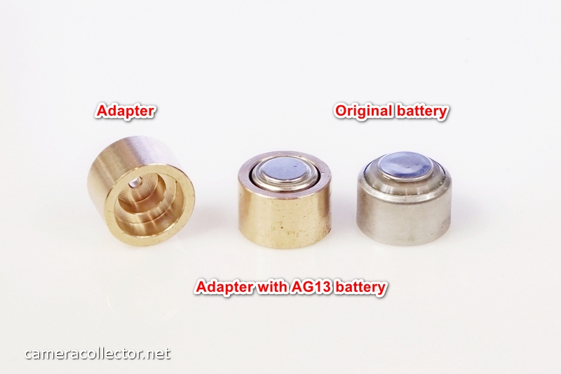 - The original battery was a mercury #640, which is no longer available. As mentioned above, there are lengthy discussions and suggestions for current replacements. To be practical, there are two simple options. First, there is a same-size battery, an alkaline 640, at 1.5V, that is freely available online. The downside is the price, around US$10 each, and it takes two. A better option is to invest in custom adapters for an AG13 battery, available on Amazon or eBay, and also cheaper on AliExpress or other Chinese outlets. I prefer the second option, as further replacement batteries would be at the cost of an AG13, hence cheaper. The electronics are designed for 1.35V, whereas the current batteries are 1.5V, resulting in auto exposure being off. It would be prudent to scarify a roll or two, compensating with the film speed settings to achieve the correct exposure.