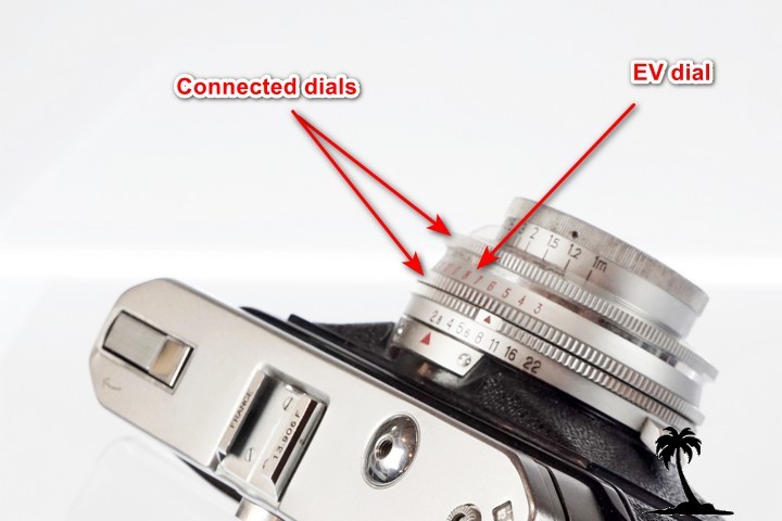 - The next dial is the shutter speed control. Here, they have added a neat option. The speed dial has two serrated rings, one in front, where the speeds are marked, and one at the back, which it is flush with the aperture dial. Once the shutter speed and aperture are set, you may turn the two flush dials together to retain a fixed exposure value. It is simple yet practical. There are similar options on other cameras, but all involve pulling one of the rings to uncouple.