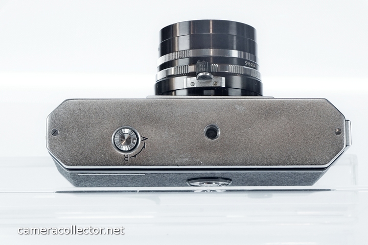 - The top has a manual reset frame counter embedded in the winder base, a cold accessory shoe and a fold-down rewind crank.